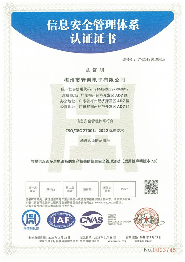 ISO27001体系证书